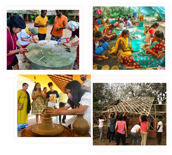 Pondicherry and Auroville offer immersive art and creative learning experiences. In Pondicherry, visitors can explore sculpture workshops at the Sri Aurobindo Ashram or traditional crafts at the Pondicherry Crafts Village. The French Quarter is a vibrant hub for street art and galleries like Gallery Sri Parvati and Kalinka Art Gallery showcase contemporary works. Auroville, known for its spiritual focus, hosts the Auroville Art Gallery, offering exhibitions and workshops. The Auroville Earth Institute teaches sustainable architecture using natural materials. Visitors can also engage in creative yoga, pottery, and painting workshops. Auroville's cultural events and community-driven art projects provide opportunities for hands-on creativity. Both destinations offer a perfect blend of artistic exploration and personal growth.